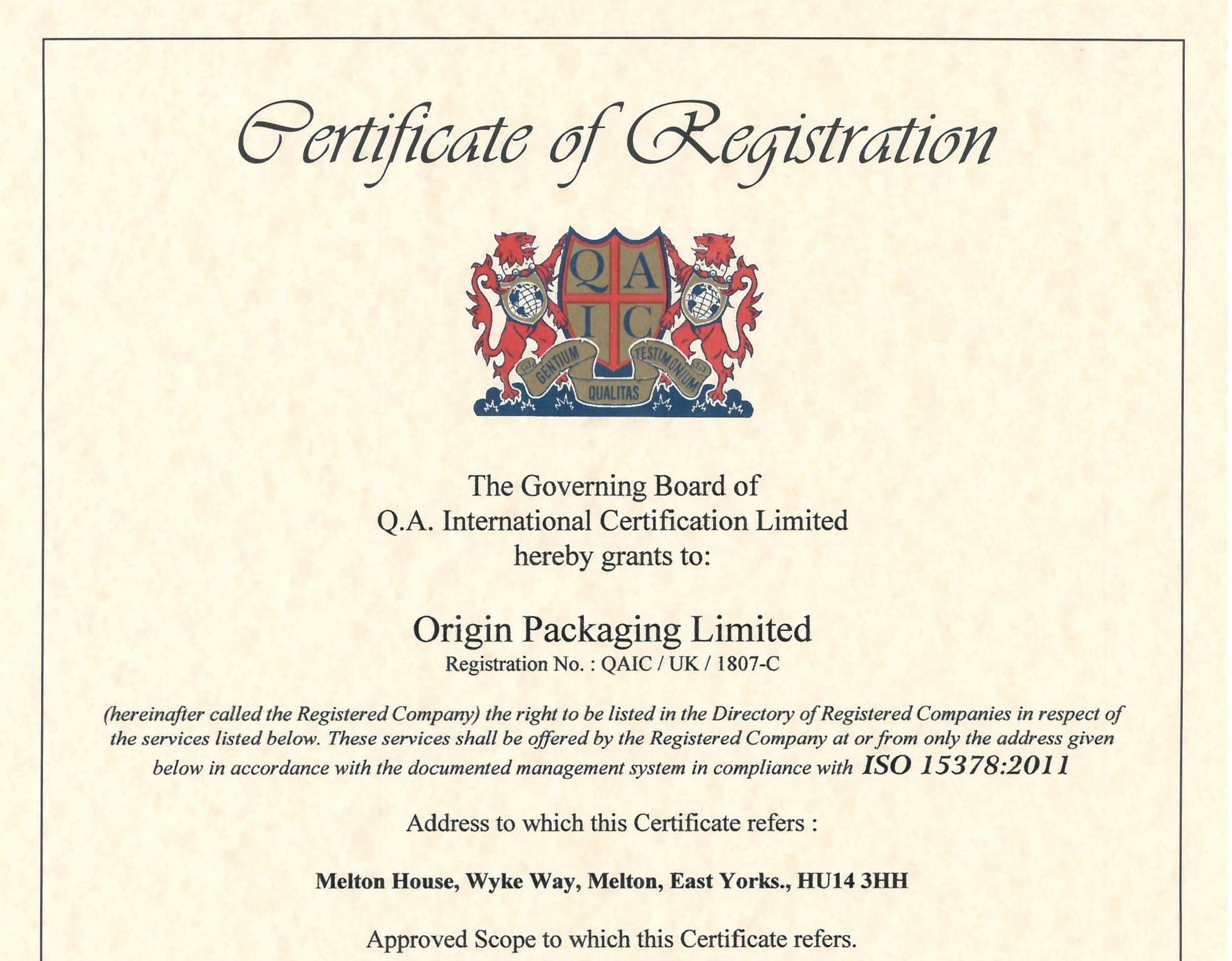Origin are now officially ISO 15378 certified which supports the future growth and direction of the global company